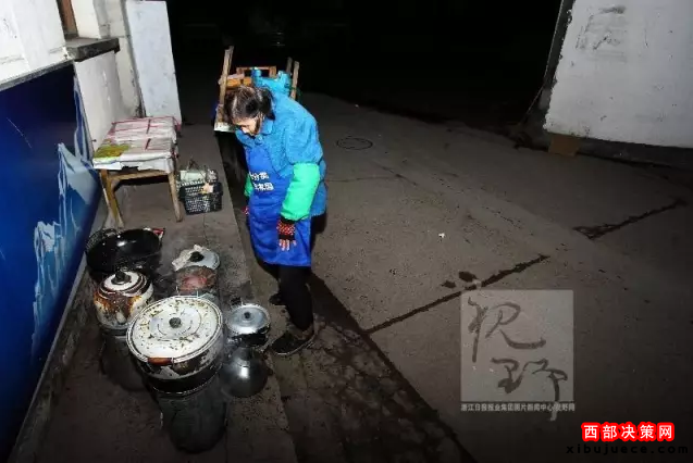 6口鍋、4個煤爐、2張桌子、1輛腳蹬三輪車和幾把塑料凳,這就是毛師花老人出早餐攤的全部家當。