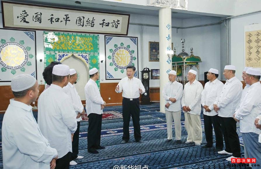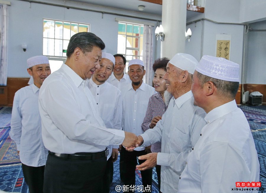 新華網(wǎng)北京7月19日電習(xí)近平總書記19日上午來到寧夏回族自治區(qū)銀川市新城清真寺了解宗教活動開展情況。在禮拜大殿,習(xí)近平與寧夏伊斯蘭教界人士親切交流,通過他們向廣大穆斯林群眾致以親切問候和良好祝愿。習(xí)近平說,我國的各民族和宗教是在5000多年的文明史中孕育發(fā)展起來的,只有落地生根才能生生不息。習(xí)近平希望大家繼續(xù)發(fā)揚(yáng)愛國愛教傳統(tǒng),在脫貧致富奔小康的道路上發(fā)揮積極作用。在場的伊斯蘭教界人士表示,將認(rèn)真貫徹落實全國宗教工作會議精神,既念好古蘭經(jīng),又念好致富經(jīng),為國家發(fā)展?fàn)I造和諧的環(huán)境。(文字:新華社記者霍小光,攝影:新華社記者鞠鵬、李濤據(jù)新華社“新華視點(diǎn)”微博報道)