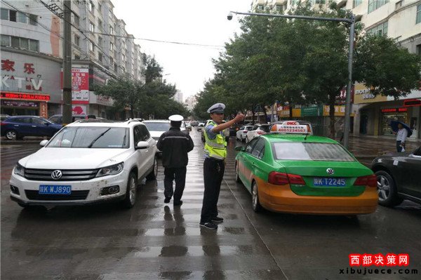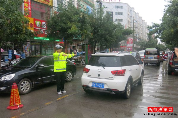 但是,受雨天影響,城區(qū)部分路段不同程度受阻淤積,路面濕滑,能見度低,交通安全隱患突出,給廣大人民群眾出行帶來不便,為確保道路交通安全穩(wěn)定,靖邊縣公安局交警大隊城區(qū)二中隊領(lǐng)導(dǎo)高度重視,及時掌控路面情況,啟動雨天應(yīng)急預(yù)案,落實各項有效管控措施,嚴防雨天道路交通事故發(fā)生。
