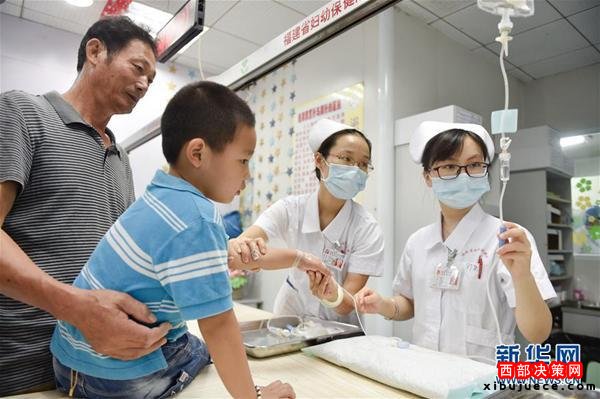 醫(yī)改地方在行動。2016年8月,首期福建省內10家公立醫(yī)療機構正式簽訂協(xié)議,成立福建首個婦幼醫(yī)聯(lián)體。圖為在福建省婦幼保健院,醫(yī)護人員為患兒打點滴。