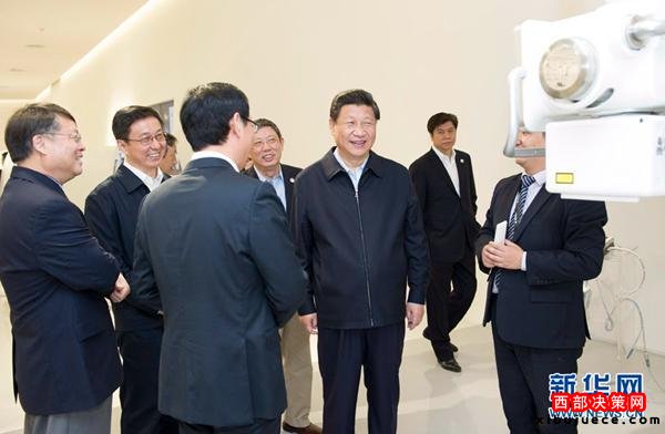 2014年5月23日至24日,中共中央總書記、國家主席、中央軍委主席習近平在上??疾煺{研。這是他在上海聯(lián)影醫(yī)療科技有限公司考察。習近平要求有關方面做好政策引導、組織協(xié)調、行業(yè)管理等工作,加快現(xiàn)代醫(yī)療設備國產(chǎn)化步伐。新華社記者黃敬文攝