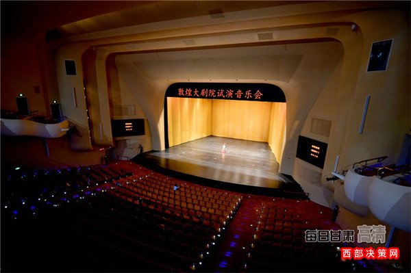 占地面積6萬平方米的敦煌國際會展中心項目A館,將作為敦煌文博會永久會址,目前整個建設工程已全部完工,內(nèi)部衛(wèi)生清潔工作正在有序進行。B館和C館內(nèi)各項布展工作緊鑼密鼓。敦煌大劇院是文博會另一主要場館,文博會期間的中外精品文藝節(jié)目將在這里演出。該項工程現(xiàn)已全面完成,舞臺機械、燈光音響正在調(diào)試之中。當天下午,敦煌大劇院迎來首場試演,以此對全場的音響設備進行調(diào)試和修正。