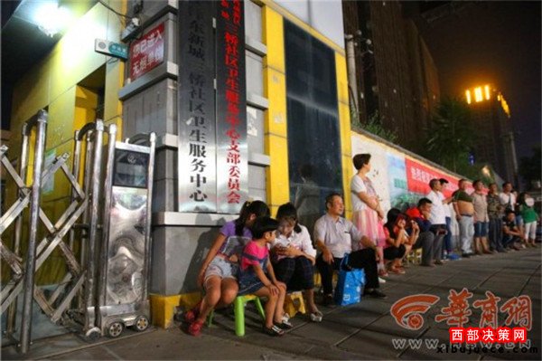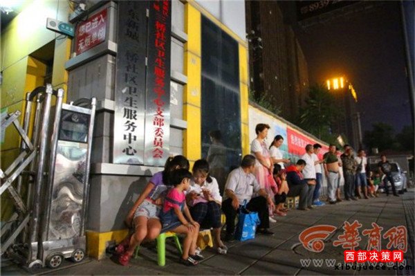 昨晚10時,西安市灃東新城三橋社區(qū)衛(wèi)生服務(wù)中心大門口,30余名家長排起了長隊,為了給入托孩子體檢,他們要一直等到31日早上7點(diǎn)醫(yī)院開始發(fā)號。