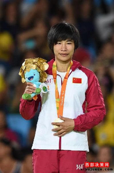 9月8日,李麗青在頒獎儀式上。當(dāng)日,在2016年里約殘奧會柔道女子48公斤級決賽中,中國選手李麗青戰(zhàn)勝德國選手布魯西希,獲得冠軍。