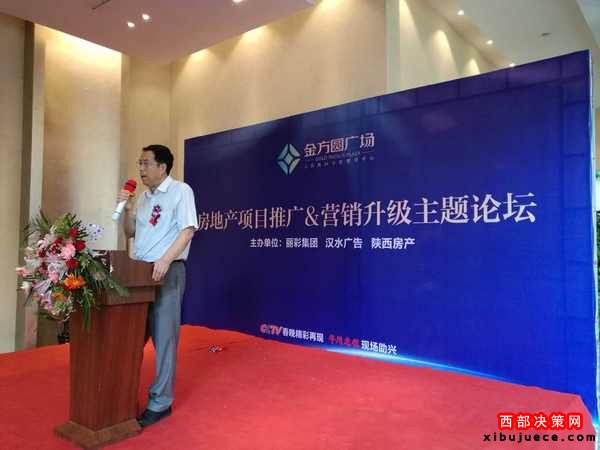 由陜西麗彩實(shí)業(yè)集團(tuán)、陜西漢水廣告文化傳媒有限公司、《陜西房產(chǎn)》共同主辦的“房地產(chǎn)項(xiàng)目推廣與營(yíng)銷(xiāo)升級(jí)主題論壇”,于2016年9月8日下午在咸陽(yáng)金方圓廣場(chǎng)項(xiàng)目營(yíng)銷(xiāo)中心圓滿舉辦。兩輪的嘉賓對(duì)話結(jié)束后,麗彩集團(tuán)總裁高彥生先生代表郁鵬董事長(zhǎng)登臺(tái)演講,他側(cè)重對(duì)論壇成果進(jìn)行了總結(jié)和點(diǎn)評(píng)。(見(jiàn)下圖)