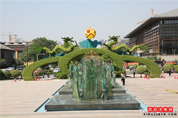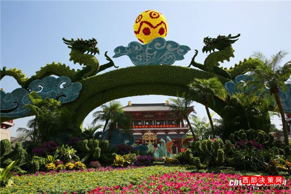 原標(biāo)題:芙蓉園閉園備央視秋晚 雙龍戲珠巨型花壇喜迎中秋