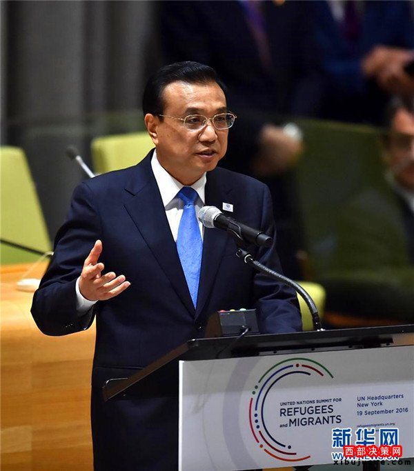 國務(wù)院總理李克強(qiáng)當(dāng)?shù)貢r(shí)間19日上午在紐約聯(lián)合國總部出席第71屆聯(lián)大解決難民和移民大規(guī)模流動(dòng)問題高級(jí)別會(huì)議并發(fā)言。