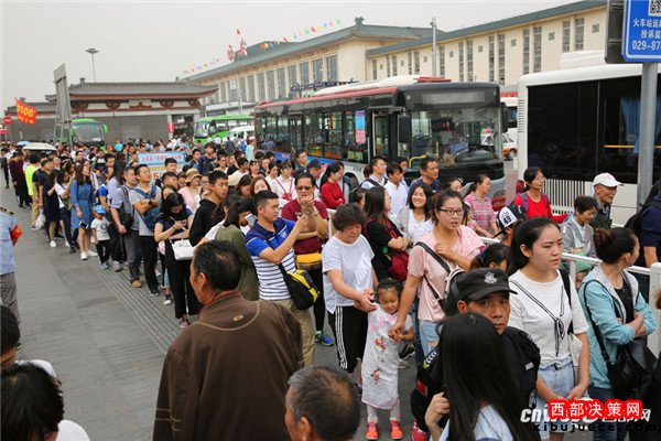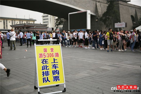 記者魏永賢10月4日,西安火車站廣場發(fā)往兵馬俑的游5(306)公交一輛接一輛無間隔發(fā)出,但等候上車的游客隊伍還是排了幾百米長,一名就要上車的游客說,他排了1個多小時。
