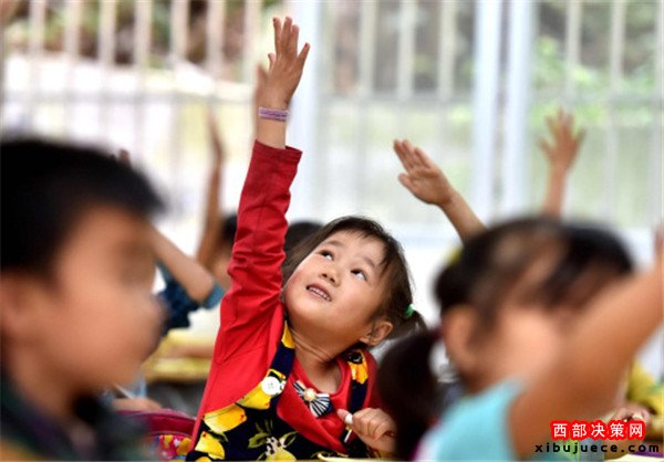 10月10日,在廣西都安瑤族自治縣隆福鄉(xiāng)漁洞小學(xué),學(xué)前班的同學(xué)們?cè)谡n堂上踴躍舉手回答提問(wèn)。
