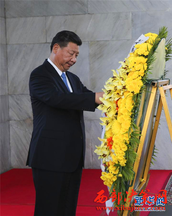 會談前,習(xí)近平向柬埔寨獨(dú)立紀(jì)念碑獻(xiàn)花圈。
