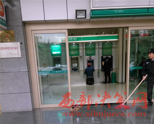 昨晚9時(shí)許,記者聯(lián)系上小張,他是西安理工大學(xué)的學(xué)生,今年20歲。小張回憶說(shuō),這是昨日上午9時(shí)許他在銀行門(mén)口看到的一幕,一位50歲左右的農(nóng)民工,將鞋放在銀行門(mén)口,然后進(jìn)到銀行里面,“怎么進(jìn)去的我沒(méi)看見(jiàn),只看見(jiàn)他脫鞋了,后來(lái)跪在ATM機(jī)前操作。”