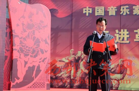 下午1點,“長征精神代代傳——中國音樂家協(xié)會金鐘之星藝術(shù)團‘送歡樂•下基層’”慰問演出在南梁“兩點一存”紅飄帶廣場拉開序幕,吸引了慶陽、華池周邊縣域的群眾近40000余人觀看了演出。中共慶陽市委書記贠建民、中國音樂家協(xié)會分黨組書記韓新安分別致辭,表達了他們的誠摯謝意和問候。