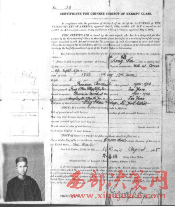 如此看來,他是一位了不起的地方富商。江驥的太和商店主要經(jīng)營雜貨貿(mào)易。因此,他向廣州政府申請去美國游歷,開開眼界。雖然1905年是美國百年排華運動的高潮年,而且美國政府明令禁止“華工”入境。就在江驥申請游美護(hù)照的前一個月,中國爆發(fā)了聲勢浩大的抵制美貨運動,其目的就是抗議美國壓迫華僑。但是,美國是允許中國商人入境游歷的,像江驥這樣的廣州富商,更是歡迎。所以,兩廣總督岑春煊會同美國駐廣州總領(lǐng)事雷伏禮在1905年8月18日分別在江驥的中國護(hù)照了簽名,準(zhǔn)許其赴美游歷。