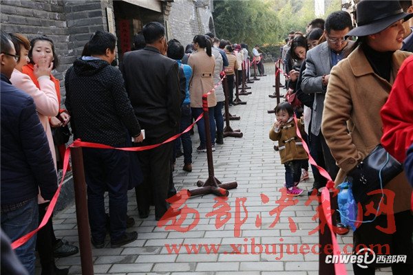 11月15日是周二,但去長安區(qū)古觀音禪寺看網紅銀杏樹的游客還是排起了長隊,進入寺廟大門跟著曲曲折折的隊伍緩緩移動到銀杏樹前得1個來小時。在銀杏樹的圍欄里,一名工作人員用喇叭不停地提醒游客加快腳步不要停留。