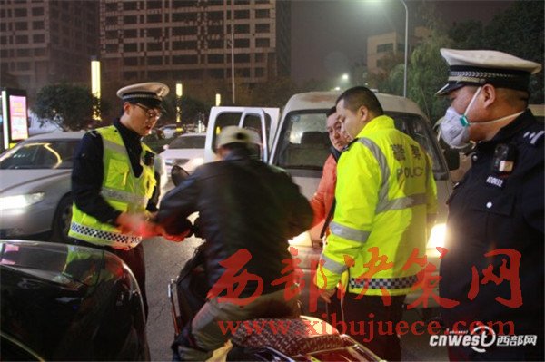 周五(18日)晚高峰,市政工程占用了快車道導(dǎo)致?lián)矶?,民警在科技路指揮交通。