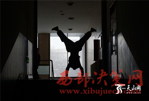 11月20日,烏魯木齊的氣溫低至零下十五度,天空中還飄著雪花。新疆農(nóng)業(yè)大學(xué)禮堂內(nèi)卻暖意融融,不時(shí)傳來掌聲與喝彩聲。只見一名男生飛快地上板、蹬腳、滑行、起跳、轉(zhuǎn)彎、落地……短短幾十秒內(nèi),完成了一整套平地自由花式動(dòng)作。待他走下場(chǎng)地,周圍的學(xué)生紛紛迎上去,一一和他擊掌表示祝賀和鼓勵(lì)。