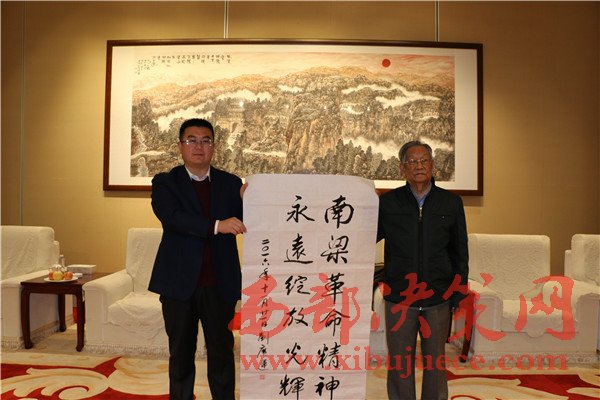 西部決策網(wǎng)訊(帥華鋒 杜杰 通訊員 趙高銪)11月21日,原全國(guó)政協(xié)常委、國(guó)家林業(yè)部常務(wù)副部長(zhǎng)劉廣運(yùn),國(guó)家林業(yè)局老干局副局長(zhǎng)、中國(guó)林業(yè)書(shū)法家協(xié)會(huì)副秘書(shū)長(zhǎng)王德宗,人民日?qǐng)?bào)海外版書(shū)畫(huà)藝術(shù)部主任助理、人民書(shū)畫(huà)藝術(shù)網(wǎng)外聯(lián)部副主任陳厚學(xué)一行,在慶陽(yáng)市林業(yè)局、華池縣人民政府副縣長(zhǎng)池軍以及南梁紅色景區(qū)建設(shè)管理局辦公室主任張全鈺、南梁革命紀(jì)念館館長(zhǎng)聶明靜的親切陪同下,踏上陜甘邊革命根據(jù)地“紅色南梁”這片革命的熱土。