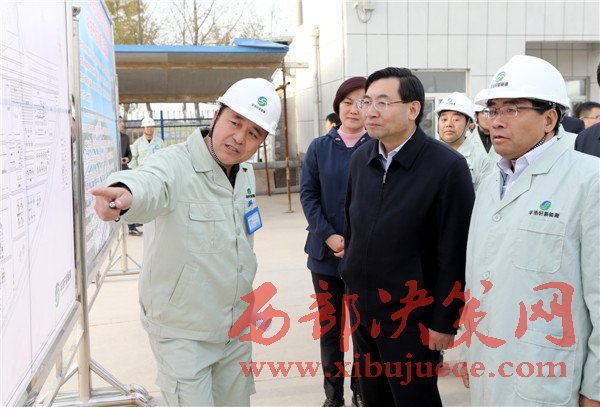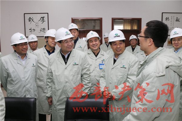 11月19日,省長胡和平(右二)在陜西華浩軒公司視察調研,右一為中陜核集團董事長張斌成,左二為永壽縣委書記蘇曉梅。