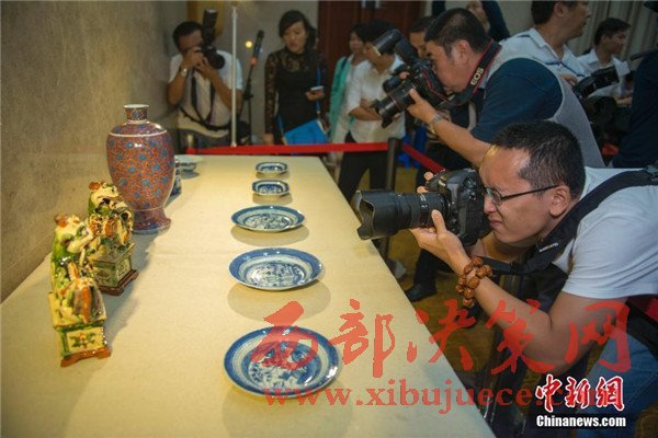 媒體記者正在拍攝十件海外文物。