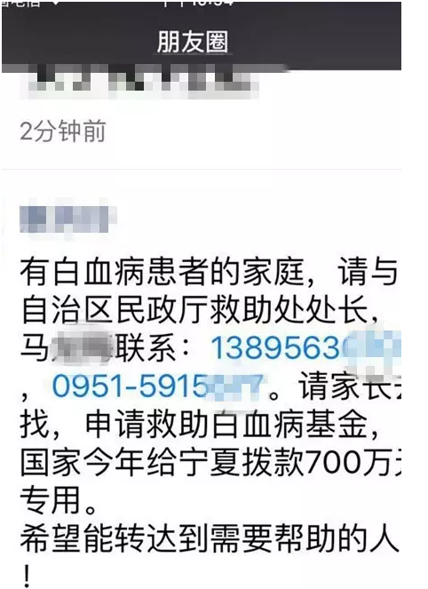 3日開(kāi)始,該微信在多個(gè)朋友圈中刷屏,還公布了工作人員的手機(jī),當(dāng)天,多個(gè)網(wǎng)友撥打該手機(jī)申請(qǐng)或詢問(wèn)是否能申請(qǐng)救助白血病基金。“剛開(kāi)始還一頭霧水,后來(lái)看到了同事轉(zhuǎn)發(fā)給我的朋友圈截圖,才明白過(guò)來(lái)。”