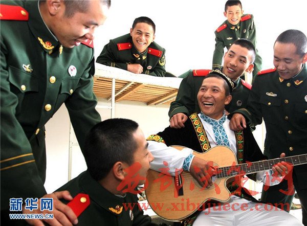 12月5日,艾麥爾·吾斯曼在訓練之余為戰(zhàn)友們彈琴演唱。