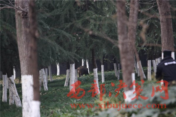 12月7日,安徽合肥,體重近200斤的成年野豬,出現(xiàn)在合肥市包河區(qū)政府大樓院內(nèi),民警兩次鳴槍?zhuān)戏适袆?dòng)物園工作人員吹了3針麻醉,“二師兄”愣是不倒。下午15時(shí),包河區(qū)行政中心車(chē)來(lái)車(chē)往,前來(lái)辦事的群眾擠滿大廳,很多人并不知道,一只野豬就在附近溜達(dá)。“區(qū)政協(xié)一位女領(lǐng)導(dǎo)最先看到,上午7點(diǎn)多,就在國(guó)稅局后邊的綠化帶里頭。我也看到了,拿東西攆,它就往西頭跑。跟同事們說(shuō),都不相信我,講區(qū)政府怎么可能出現(xiàn)野豬。”物業(yè)師傅一臉認(rèn)真,恨不得用手在空中畫(huà)出野豬的模樣,“我是農(nóng)村過(guò)來(lái)的,那就是野豬,嘴巴又尖又長(zhǎng)的嘛。”上午等保安們反映過(guò)來(lái),野豬已經(jīng)不知所蹤,大家便不了了之。結(jié)果下午1時(shí)許,大家伙又出現(xiàn)了。“先在綠化帶里曬太陽(yáng),被我們趕到包河區(qū)檢察院院子里,接著又跑到區(qū)政府東邊的綠化帶里。”