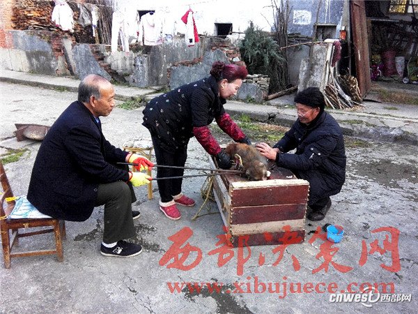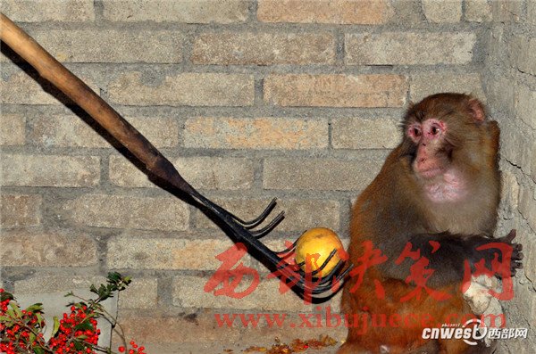 2016年12月8日,在寧強(qiáng)縣野生動(dòng)植物保護(hù)站的工作人員耐心“勸慰”下,這只獼猴終于轉(zhuǎn)過(guò)頭來(lái)看著鐵叉上的蘋(píng)果。