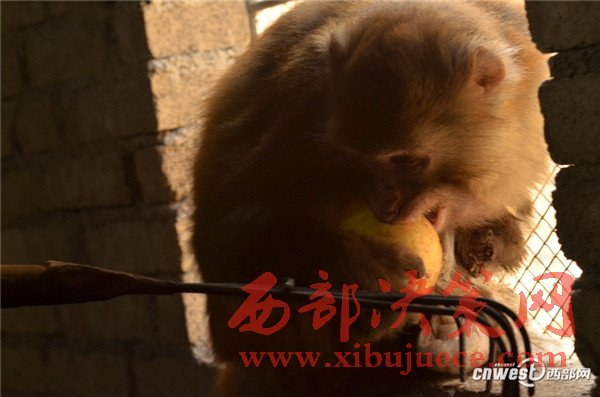 2016年12月8日,這只獼猴終于同意啃食寧強(qiáng)縣野生動(dòng)植物保護(hù)站工作人員給它喂食的蘋(píng)果。