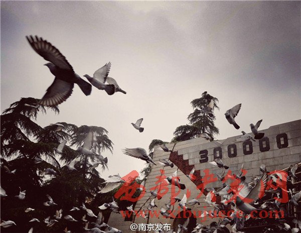 國家公祭儀式結(jié)束,現(xiàn)場(chǎng)放飛了3000只和平鴿。
