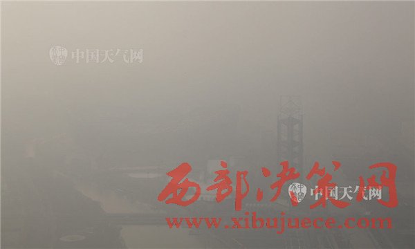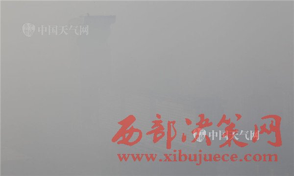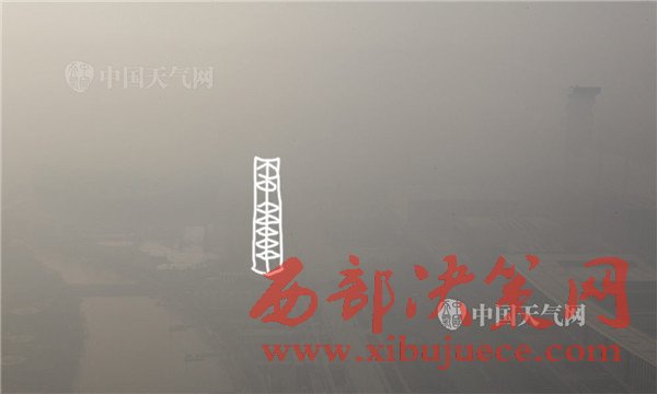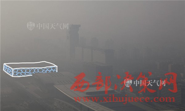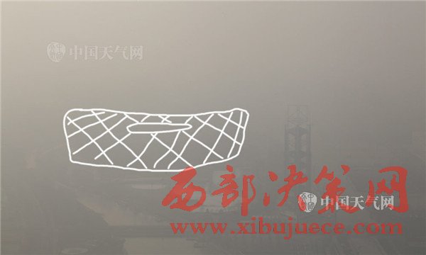 2016年12月19日早晨,北京持續(xù)空氣重污染。記者登上246.8米高的北京奧林匹克塔,鳥瞰北京城,發(fā)現(xiàn)咫尺之遙的鳥巢、水立方等奧運(yùn)場館和城市地標(biāo)建筑被霾“吞沒”,消失不見。圖為鳥巢。