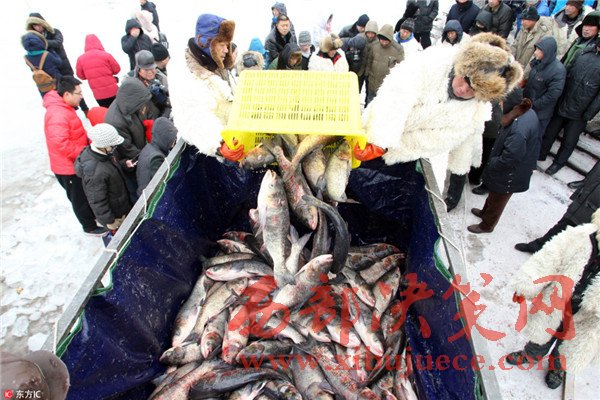 2016年12月25日,哈爾濱市長(zhǎng)嶺湖舉行第三屆冬捕冬釣旅游節(jié)?,F(xiàn)場(chǎng),漁民鑿開冰封的湖面,首網(wǎng)撈起萬(wàn)余斤鮮魚,吸引了許多市民和游客前來(lái)觀看。冰面上支起大鍋,現(xiàn)場(chǎng)熬制鮮魚湯供人們品嘗。