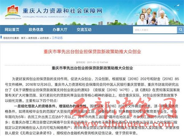 日前,市人社局會同人行重慶營管部、市財政局研究出臺了《關于調整創(chuàng)業(yè)擔保貸款政策支持創(chuàng)業(yè)就業(yè)的通知》,對借款人的資格條件進行了細化,鼓勵區(qū)縣出臺配套政策,強化對科技型企業(yè)的支持,突出扶持的差異性,還健全了貸款工作四項機制。