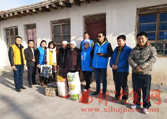 1月13日,寧夏海興義工聯(lián)合會銀川辦事處的工作人員來到銀川市賀蘭縣南梁臺子鐵東村、鐵西村,慰問當(dāng)?shù)?戶孤寡貧困家庭,捐贈米面油和棉衣等生活物品,  “大娘,還有半個月就過年了,這是咱們企業(yè)的一點心意,祝您老身體健康,吉祥如意”。這次慰問空巢老人和貧困家庭的單位有:銀川培訓(xùn)學(xué)院、銀川美年大健康體檢醫(yī)院、海原馬軍飯莊、搏港旅游公司、寧夏雙玉農(nóng)業(yè)科技有限公司、寧夏塞杞源苗木專業(yè)合作社。今年年初,他們根據(jù)南梁臺子鄉(xiāng)提供的貧困戶名單,結(jié)合入戶走訪,最終確定了馬寶林、馬萍霞等8戶殘疾、孤寡貧困家庭。由寧夏蕊杰伯港旅游有限公司、 銀川美年大健康體檢醫(yī)院等7家協(xié)會成員企業(yè)共同出資購買生活物品,逐戶慰問,反哺社會。