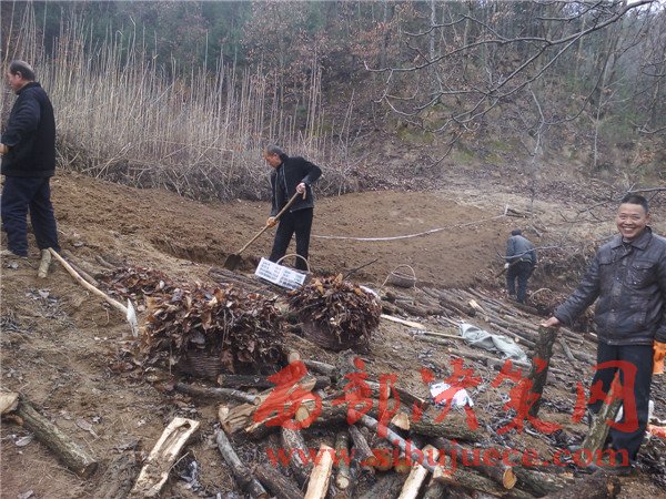 王存山(右一)現(xiàn)場(chǎng)指導(dǎo)群眾栽種豬苓