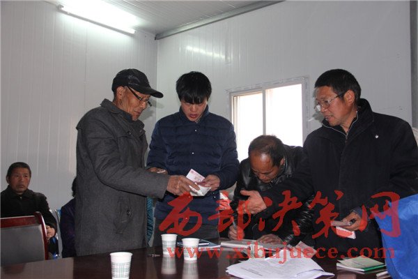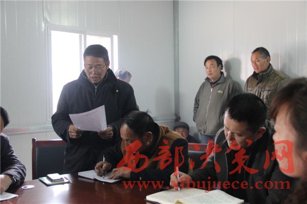 王存山(左1)在群山豬苓合作社成立大會(huì)上宣讀合作社章程。