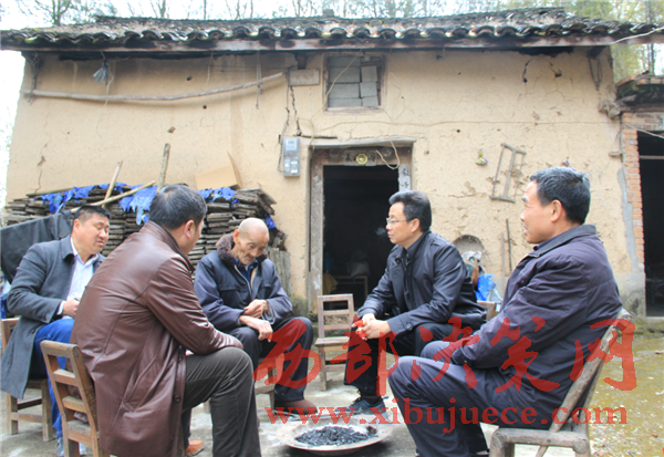 縣委書記梁濤在貧困戶家中調研(左二為梁濤)
