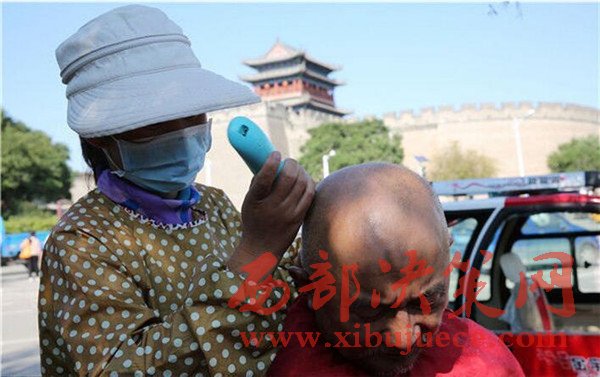 2016年9月21日,陜西榆林,劉福學(xué)把所有積蓄都用來(lái)收藏,生活節(jié)儉,頭發(fā)長(zhǎng)了就在街頭的5元理發(fā)攤解決。