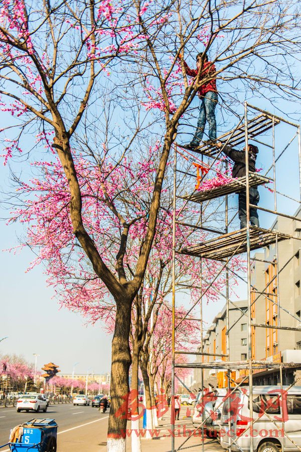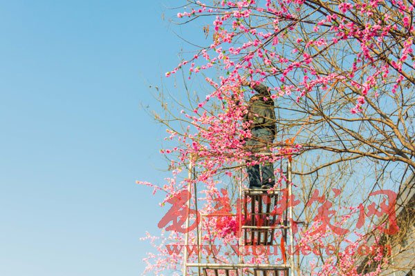 1月16日,在呼和浩特市大南街,工人們正在安裝花燈。農(nóng)歷丁酉年(雞年)春節(jié)即將到來(lái),首府處處年味十足,扮靚城市。