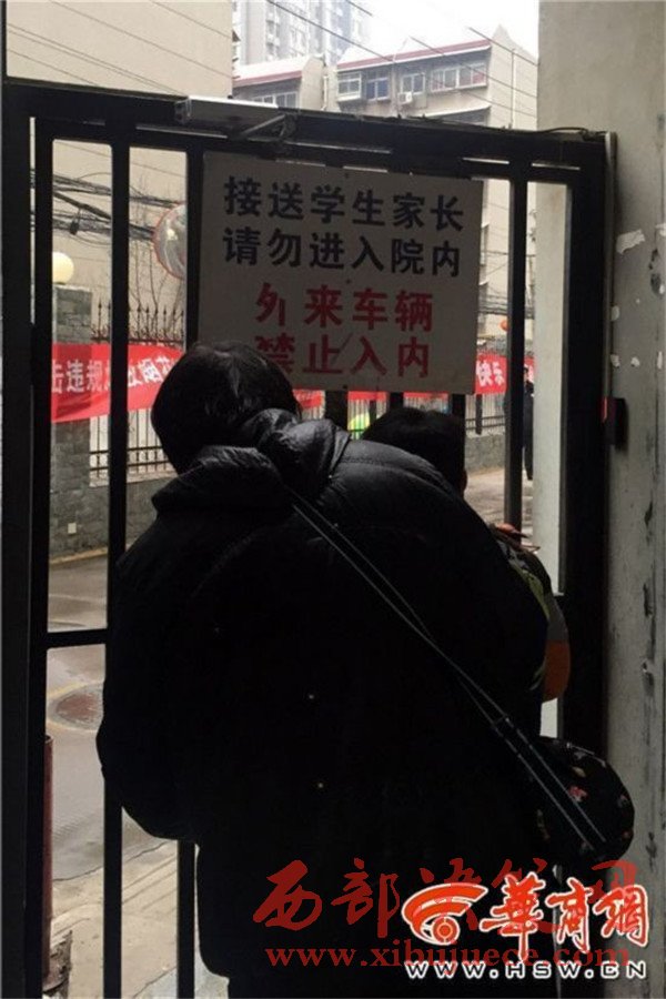2月7日上午10時許,西安市友誼西路自在廣場小區(qū)內(nèi),一位送孩子上補習(xí)班的家長被擋在門外。小區(qū)門衛(wèi)要求讓補習(xí)班老師親自下樓來接。