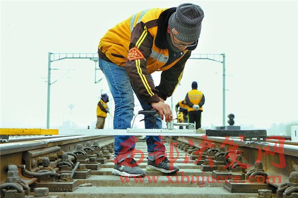 西安鐵路局綏德工務(wù)段職工檢查線路鋼軌狀況。該段通過機車添乘和徒步檢查等方式,加大對凍害、道岔等地段檢查力度,對發(fā)現(xiàn)問題,根據(jù)嚴(yán)重程度,及時申請臨時要點進行整治,確保春運期間運輸安全。