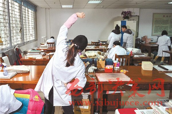 古籍修復(fù)工作現(xiàn)在仍是冷門行業(yè),修復(fù)師們頭上頂著“大國(guó)工匠”的光環(huán),背后卻有很多的艱辛。古書拆裝過(guò)程中會(huì)遇到大量陳年的灰塵、蟲卵等,打噴嚏、犯鼻炎、過(guò)敏等現(xiàn)象時(shí)有發(fā)生;保持伏案姿勢(shì)一整天,幾乎所有的修復(fù)師都有頸椎和腰椎疾病。而古籍修復(fù)從業(yè)人員的待遇并不高,對(duì)年輕人缺乏吸引力。每年會(huì)有許多實(shí)習(xí)生來(lái)到中心實(shí)習(xí),但實(shí)習(xí)結(jié)束,不少學(xué)生就離開這個(gè)行業(yè),能夠留下來(lái)的,寥寥無(wú)幾,更多人把它當(dāng)作副業(yè)或者興趣愛好。