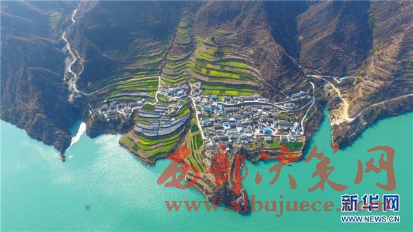 甘肅省隴南市文縣玉壘坪村山坡上的油菜花已開(kāi)始綻放。隨著早春臨近,甘肅省隴南市文縣碧口水庫(kù)兩岸的油菜花開(kāi)始綻放,為碧波蕩漾的白龍江畔點(diǎn)綴上金黃的色彩。