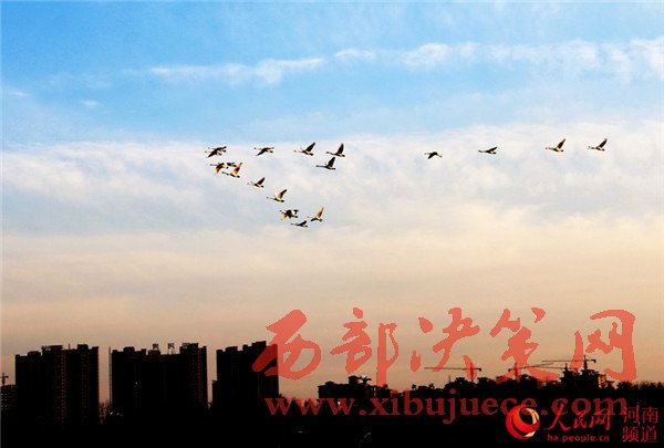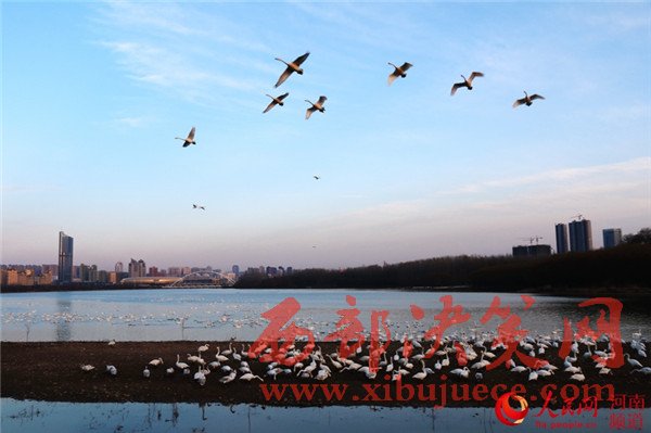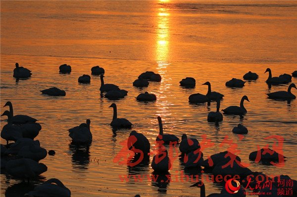 每年11月至來(lái)年2月,都會(huì)有數(shù)以萬(wàn)計(jì)的白天鵝,從遙遠(yuǎn)的北方經(jīng)過(guò)長(zhǎng)途遷徙來(lái)這里棲息越冬,因此三門峽市被譽(yù)為“天鵝之城”。在三門峽市天鵝湖城市濕地公園雙龍湖白天鵝觀賞區(qū)波光粼粼的湖面上,數(shù)千只白天鵝自由自在地飛翔,或安詳優(yōu)雅地結(jié)伴嬉戲,或溫情脈脈地交頸摩挲,或悠閑自得地以嘴梳理羽毛,或頸扎水中,翩翩跳起“芭蕾舞”。這些圣潔的仙鳥(niǎo),或飛、或游、或走、或臥,千姿百態(tài),構(gòu)成一幅幅美麗動(dòng)人的畫(huà)面。