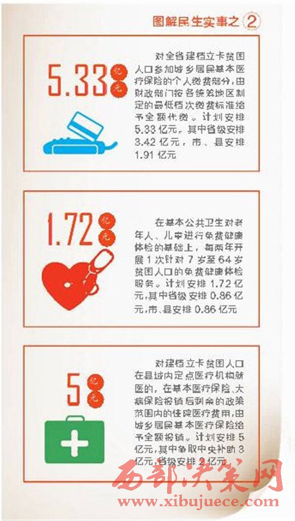 對建檔立卡貧困人口在縣域內(nèi)定點醫(yī)療機(jī)構(gòu)就醫(yī)的,在基本醫(yī)療保險、大病保險報銷后剩余的政策范圍內(nèi)的住院醫(yī)療費用,由城鄉(xiāng)居民基本醫(yī)療保險給予全額報銷。計劃安排5億元,其中爭取中央補(bǔ)助3億元,省級安排2億元