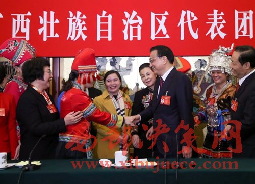 【李克強在廣西團巧借“劉三姐”祝福全國女同胞】三八婦女節(jié)這天,李克強來到廣西代表團參加審議報告。他首先祝在場的女代表及女同胞節(jié)日快樂??偫碚f:“廣西是劉三姐的家鄉(xiāng),她的歌聲至今余音繚繞,代表了女同胞美好的形象。我在這里向你們,并通過你們向全國女同胞致以節(jié)日的問候和衷心的祝福。”