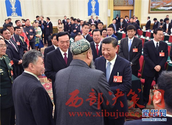 2017年3月10日,習(xí)近平在新疆代表團參加審議時說,要全面貫徹黨的民族政策,高舉各民族大團結(jié)旗幟,引導(dǎo)各族群眾增強對偉大祖國、中華民族、中華文化、中國共產(chǎn)黨、中國特色社會主義的認(rèn)同,像愛護自己的眼睛一樣愛護民族團結(jié),像珍視自己的生命一樣珍視民族團結(jié),像石榴籽那樣緊緊抱在一起。