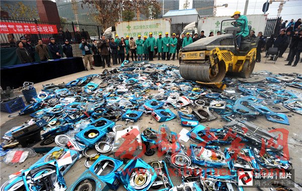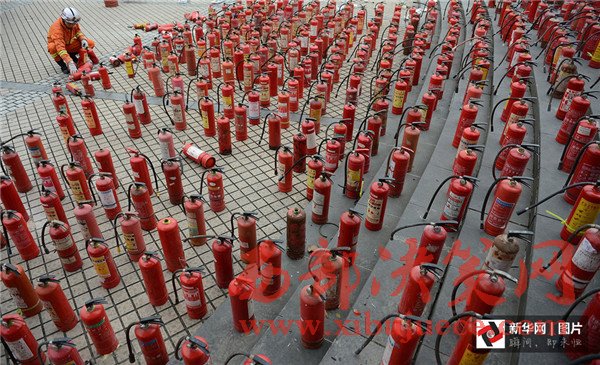 2012年11月6日,四川省成都市,一批假冒偽劣的消防滅火器被銷毀。當(dāng)日,四川省“119”消防宣傳周啟動(dòng)暨消防產(chǎn)品形式安檢公開(kāi)處理假冒偽劣消防器材產(chǎn)品集中銷毀儀式在成都舉行。
