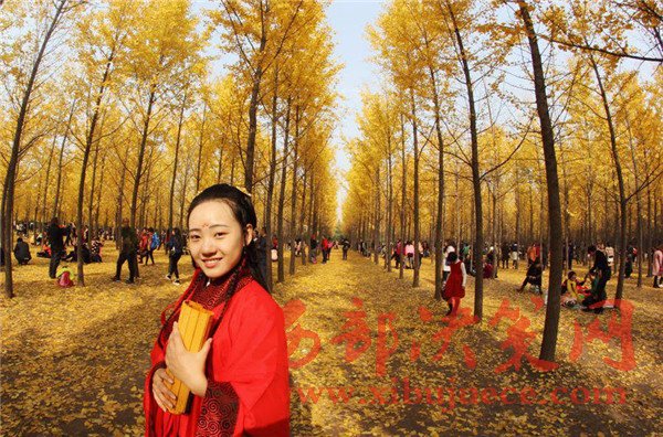 據(jù)了解,這片銀杏林早已經(jīng)是遠(yuǎn)近聞名的“網(wǎng)紅”林,來漢陽陵參觀游覽的游客,必會(huì)到此一游,并留下倩影。有不少游客是專門帶著拍照道具來的,只為將這美景與自己定格在照片上。