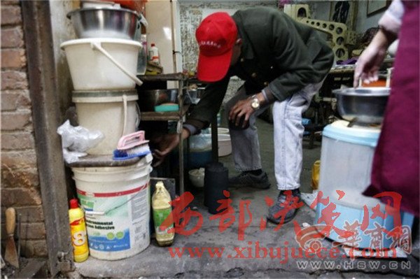 一進(jìn)門,看見61歲的夏平安坐在門房里,端著個大老碗正在吃面。華商報記者問:“自己做的面?”他停止吃面,頭一抬,慢慢地說:“老板做的。”他待的是煤場門房,也是他的宿舍,屋子里靠墻擺著一張單人床,上面鋪著厚厚的被褥。院子里堆了好多已經(jīng)打好的煤球。