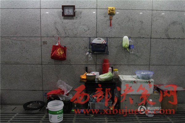 2016年11月27日,湖北武漢,10個流浪漢生活的中南財大地下通道,有床鋪、廚房、座椅、掛鐘、鏡子、自行車、取水處等,每天掃地,定期拖地,干凈整潔,儼然是一個溫馨家園。